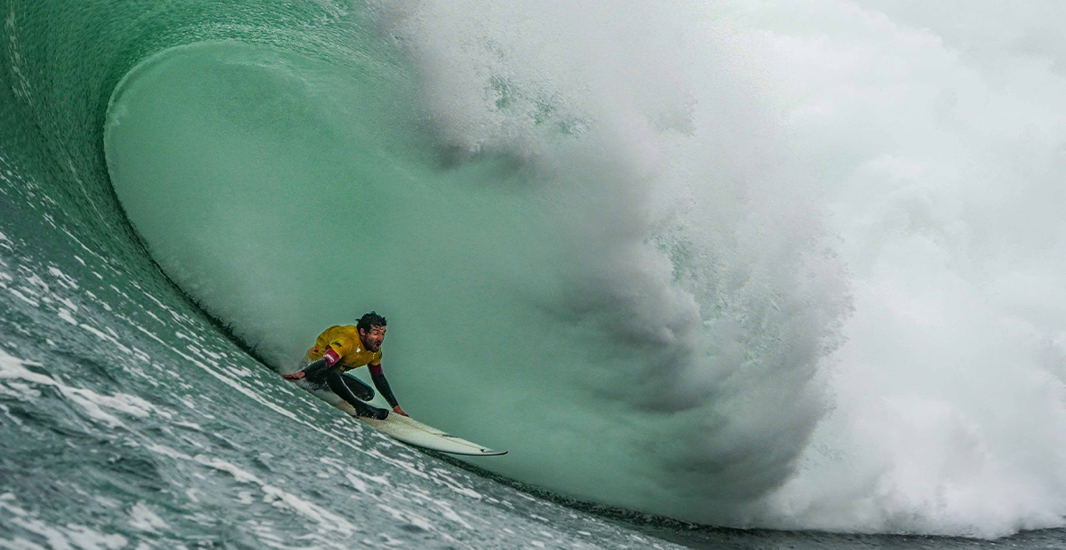 Yendo de backside, de Col entró casi sin remar a la ola, dropeó un tanto descolgado quedando con la línea perfecta para que un gigante tubo lo envuelva completamente, dejando la duda de si saldría. Al segundo reapareció de brazos levantados, celebrando sin parar.