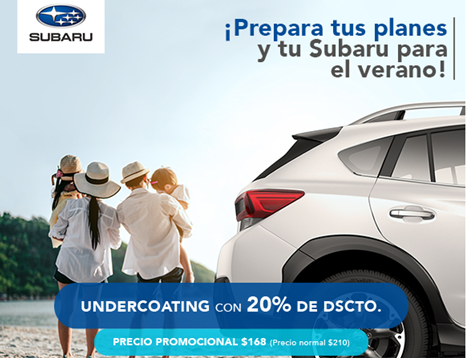 Mantén la sal lejos de tu Subaru y evita la corrosión de tu chasis con nuestra promoción de Undercoating. Con un precio promocional de $168 (precio normal $210), esta promo es indispensable si tienes planeado un viaje a la playa en las próximas semanas. Puedes agendar tu cita aquí.